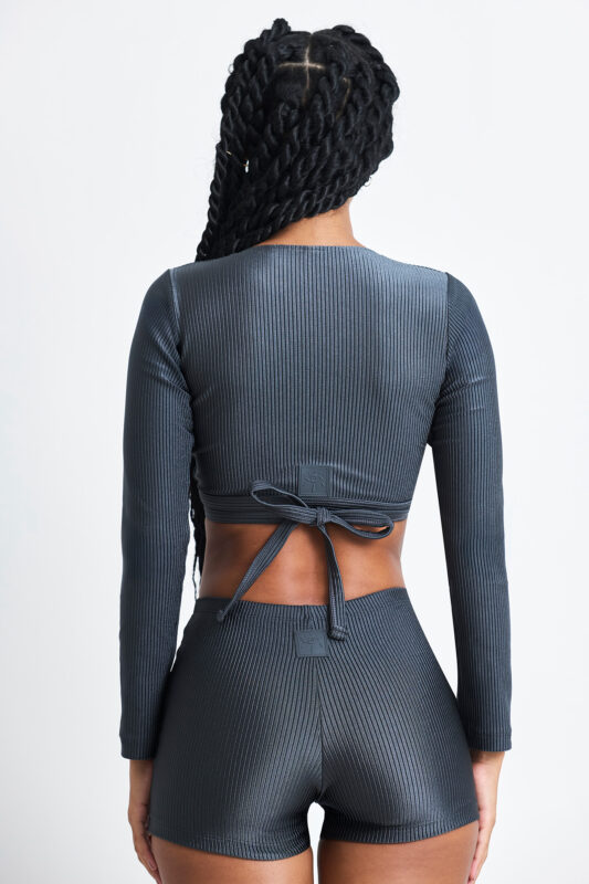 O top Mysh é o cropped manga longa que torna qualquer look fantástico, com brilho e textura, pode ser usado com a amarração para frente ou para trás. Parte interna frontal com forro. Etiqueta de composição em silicone posicionada para não incomodar ao vestir. Etiqueta externa com a logo emborrachada Yamoné na parte de trás.